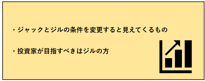 ジャックとジルのエピソードで違和感を抱くのは、先に投資をはじめたジャックの方が後から投資をしたジルよりも資産形成が上手だという印象を受けるように印象操作されていることです。
