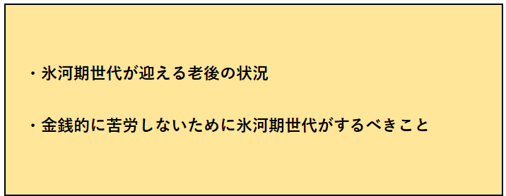 今回は氷河期世代の老後についてこの2点を中心に触れてみたいと思います。